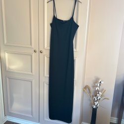 Svart ärmlös topp med spetsdetaljer vid halsen och axlarna. Toppen har en ribbad design och en liten öppning baktill vid nacken.