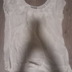 Elegant, guld färgad spetstopp med korta ärmar. Toppen har ett vackert blommönster och en rund halsringning. Perfekt för en festlig tillställning eller en utekväll.