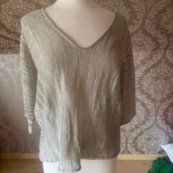 Vit stickad tröja med rund hals.