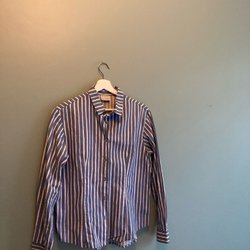 Säljer denna randiga skjorta modell Napitus från Marimekko. Storlek M och oversized. Perfekt skick på skjortan (Lätt skrynklig bara) .. Gjord i bomull med stålknappar. Ganska stor för sin storlek men den ska vara så. Svår att få tag då den sålde slut direkt.