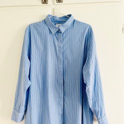 blå/hvid skjorte