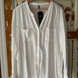 Vit skjorta med långa ärmar. Skjortan har en klassisk krage och knäppning framtill.