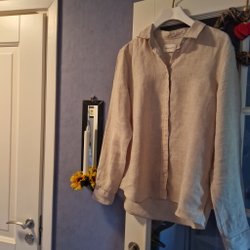 Eleganta, ljus beige byxor med klassisk design. Byxorna har fickor både fram och bak, vilket ger både stil och funktion.Mjuk Stretch Perfekt för en avslappnad men ändå sofistikerad look.midja 42cm×2 längd 105 cm midjan och ner.ljus beige