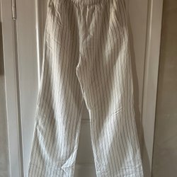 Bekväma, vita byxor med resår i midjan och fickor. Perfekta för en avslappnad stil.