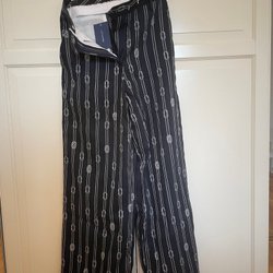 Blå och vitrutiga mys byxor med resår i midjan.