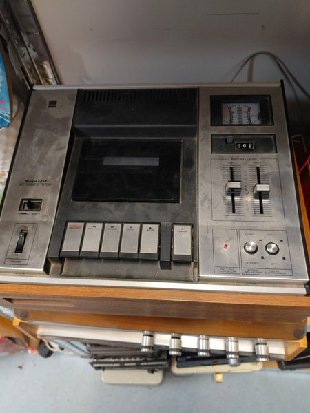 Sharp bandspelare med automatisk avstängning. Den har funktioner som inspelning, spolning framåt och bakåt, uppspelning, stopp och paus. Det finns en inspelningsindikator, stereolägesväljare och brusreduceringsfunktion.har ej funktionstestas