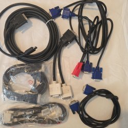 Parti med HDMI-kablar i olika längder och färger. Innehåller både svarta och vita kablar.