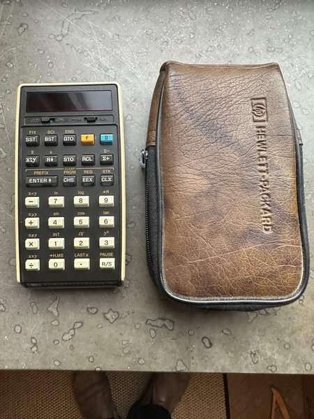 Hewlett-Packard 25 räknare med tillhörande fodral.