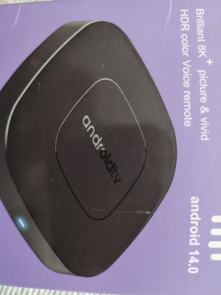 Android TV-box med stöd för 8K-upplösning och HDR-färger. Utrustad med röststyrd fjärrkontroll och Android 14.0.