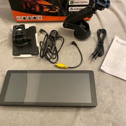 Car Multimedia Player kompatibel med Android Auto & Apple Carplay. Funktioner inkluderar trådlös Carplay, Android Auto, DVR, Bluetooth, AVIN + TF-kort, röststyrning, 1080P kamera, touch screen, strömförsörjning via cigarettändare, 7-32V adaptiv spänning och passar alla modeller. Manual medföljer.