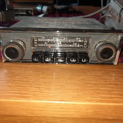 Blaupunkt bilradio med manuell stationsinställning. Radion har knappar för olika frekvensband och rattar för justering. Enheten har en metallkapsling och anslutningskablar för högtalare. Frontplåt(plast) saknas. lyser när man ansluter 12 v , men har ingen vetskap om den fungerar, kan fungera som dekoration i veteranbil