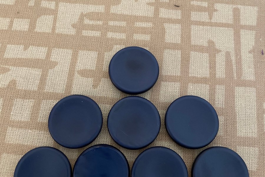 Åtta blå knappar. Mått enligt bild.