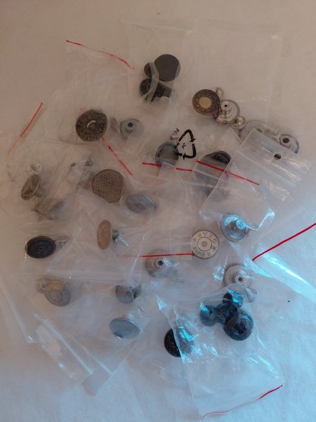 En samling jeans knappar