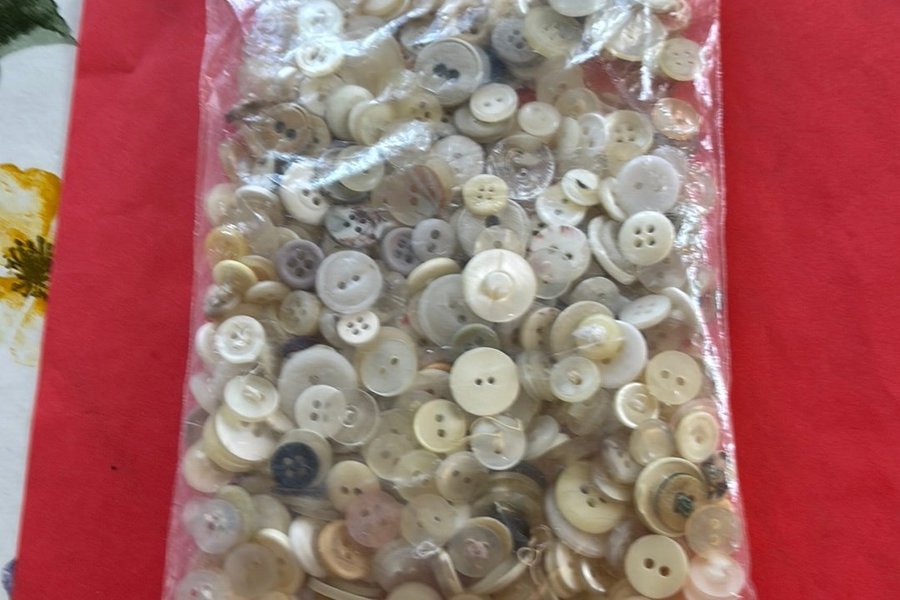 Äldre blandning av knappar, pärlemor, plast mm, kommer från ett dödsbo, men tycker det är synd att kasta. Vikt ca 150gr
