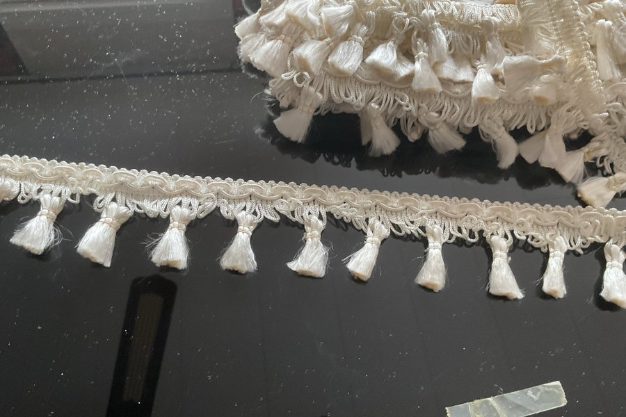 2 bitar Tofsfrans i vitt 4 m + 4 m c 4 cm inkl bård och tofs