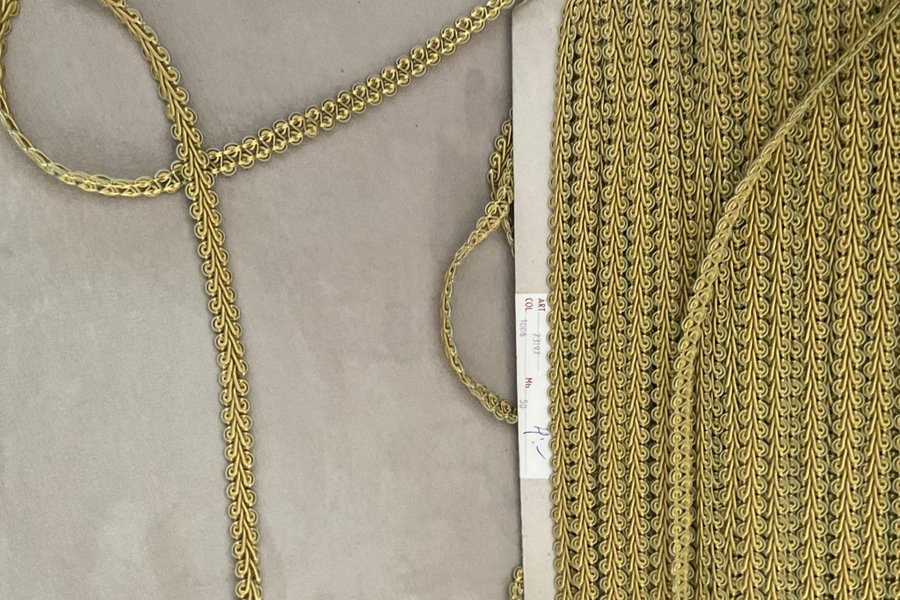 Band i guldgult och grön kant10 m x 1 cm