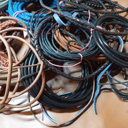 Läder i mörkbrunt och storlek (2,3-3,5 mm).