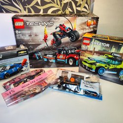 Lego Speed Champions set 75909 och 75877 med instruktionsböcker och figurer. Originalförpackning saknas. Kan sakna någon liten bit,