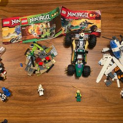Lego set med olika fordon och figurer. Inkluderar set 6601, 6630 och 6647. Säljs i befintlig skick gärna samfrakt katt finns i hemmet .