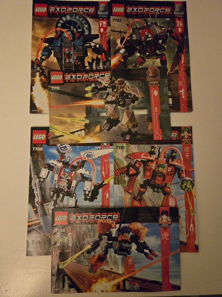 Säljer Lego Exo-Force seten 7703, 7702, 7711, 7700, 7701 och 7708.