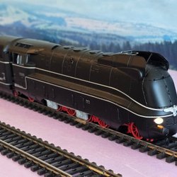 Två Märklin K räls, böjd växel, en vänster, en höger.