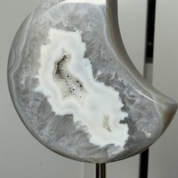 En stor och vacker carving i labradorit i form av en påfågel. Detta är en unik och otroligt välarbetad carving med många detaljer. Väldigt fin labradorit också med fin flash i rätt vinkel. Har en liten skada på vänstra sida, syns väl i videon, men inget som stör.