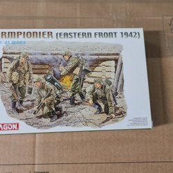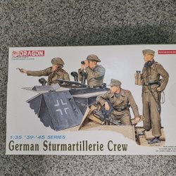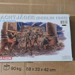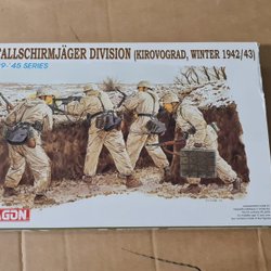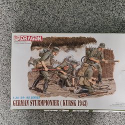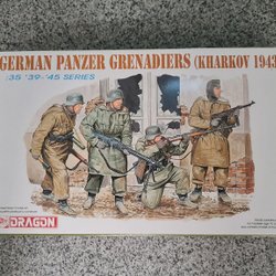 This is a Dragon 1:35 scale model kit of German Feldgendarmerie from the '39-'45 series. The kit number is 6061. It contains parts to assemble a diorama of German military police.