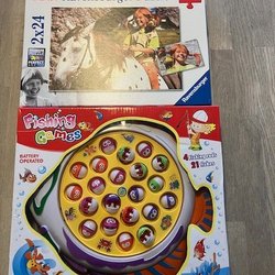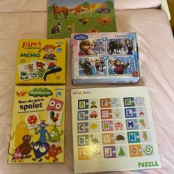 Ett set med ett Sofia den Första spel(10 figurer finns med), ett Memento spel från Alga och ett Barbie pussel.