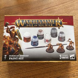 Säljer en Warhammer Age of Sigmar Stormcast Eternals + Paint Set. Perfekt för dig som vill komma igång med Warhammer Age of Sigmar eller utöka din armé. Innehåller modeller och färger för att måla dem.