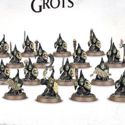 Moonclan Stabbas form ragged ranks that advance upon the foe with gongs clanging and banners waving. Eyes bulging with the madness of the Gloomspite, they pour over the enemy lines and stab wildly at everything in their path.
