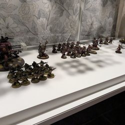Ett set med 20 målade Warhammer 40k Imperal garuds figurer. Dessa miniatyrer är redo att användas i spel eller för att visas upp. Ej 100% säker på om det är Imperal garuds? Figurerna är I tenn.