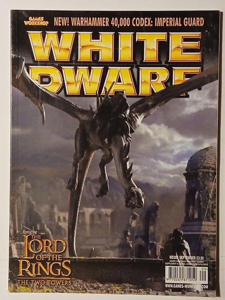 White Dwarf magasin fra september 2003. Indeholder artikler om Warhammer 40,000 Codex: Imperial Guard og The Lord of the Rings: The Two Towers. Magasinet er et månedligt gaming supplement og Citadel miniatures katalog fra Games Workshop.