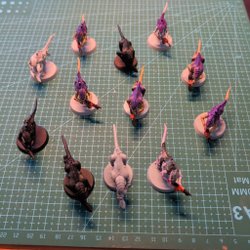 10 Termagants för Warhammer 40,000. Miniatyrerna är monterade och lätt målade, inga problem att måla över.
