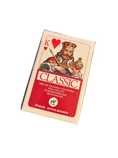 Kortlek med de välkända figurerna, inkluderat jokrar.