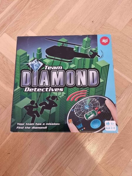 Ett spel (6 år +) som handlar om att man ska hitta en diamant med en kompass. Nyskick. Spelet är lämpligt för 2-8 spelare och rekommenderas från 6 år.
