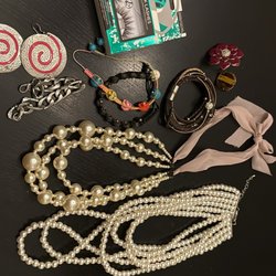 Ett parti med olika stickor i varierande storlekar och färger. Innehåller både raka stickor och rundstickor. Några av stickorna är förpackade.