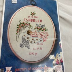 Sys med moulinégarn på vit finaida.