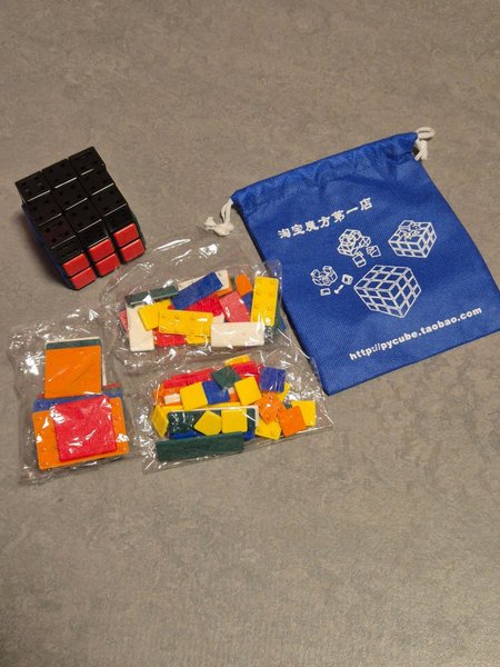 Rubiks kub som man själv kan byta ut bitarna på för att kunna öva samt skapa utmaningar med. I mycket gott skick!
