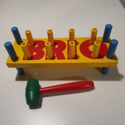 ”Den klassiska bultbrädan är lika populär idag som när den introducerades 1957. Barnet övar upp sin koncentration och öga-handkoordination när det bankar ner bultarna, bara för att sedan vända på brädan och börja om igen.