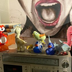 En Pippi Långstrump plånbok i väldigt fint skick. Två hästar med ryttare och en inhägnad. Två barnböcker. Allt är i bra skick.