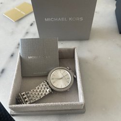 Marc by Marc Jacobs damklocka i silver och roséguld. Klockan har en vit urtavla med stenar som markerar timmarna. Den har tre mindre urtavlor och ett datumfönster. Klockan kommer med originallåda och extra länk. OBS! Behövs byta batteri. Fungerar super fint och knappt använd. Nypris ca 3.300kr fått i födelsedagspresent. Skickas självklart med originalförpackningen