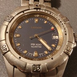 Tissot PR 100 armbandsur med stållänk. Klockan har en datumvisning. Vattentålig.Slitage,repor i glas
