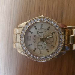 Säljer en elegant damklocka med strassdetaljer runt urtavlan. Klockan har en rektangulär urtavla med romerska siffror och en svart armband i läderimitation. Klockan drivs av ett quartz urverk. Levereras med ett nytt batteri och håller tiden bra!