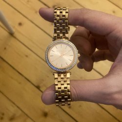 Säljer en Michael Kors damklocka. Klockan har en roséguldfärgad boett och ett matchande armband. Urtavlan är också roséguldfärgad och prydd med strass. Perfekt accessoar för alla tillfällen!