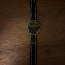 Klockan har ett silverfärgat mesharmband som man kan justera storleken så den passar just din handled.