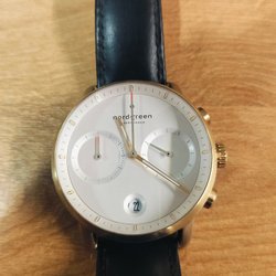 Den sølvfarvede urkasse indrammer skiven og giver en skarp overgang mellem de mørke og lyse nuancer. På skiven skaber de mindre, indbyggede cirkler et detaljeret og lagdelt look.