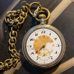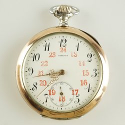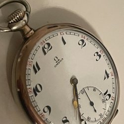 Klassiskt Omega fickur med en vacker urtavla och eleganta visare. Boetten har en graverad dekor på baksidan. Urverket är mekaniskt och syns när man öppnar boetten. Inuti boetten finns stämplar och märkningar. Stämpöad 0.800