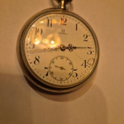 Ett klassiskt Omega fickur. Urtavlan har arabiska siffror och en separat sekundvisare. Boetten är tillverkad i metall och har serienummer 8317787. Ett charmigt samlarobjekt eller en unik accessoar.