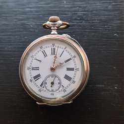 Ett vackert fickur i silver. Uret har en detaljerad urtavla med romerska siffror och dekorativa detaljer. Boetten är utsmyckad med ett intrikat blommönster. Mekanisk urverk. En nyckel medföljer.klockan fungerar som den ska boett i finsilver 935 diameter ca 35mm