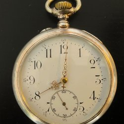 Ett vackert fickur i 0.800 silver. Uret har en detaljerad boett med initialerna ACL på baksidan. Inuti boetten finns stämplar som indikerar silverhalten 0.800 samt andra tillverkningsstämplar. Uret har 10 rubis.